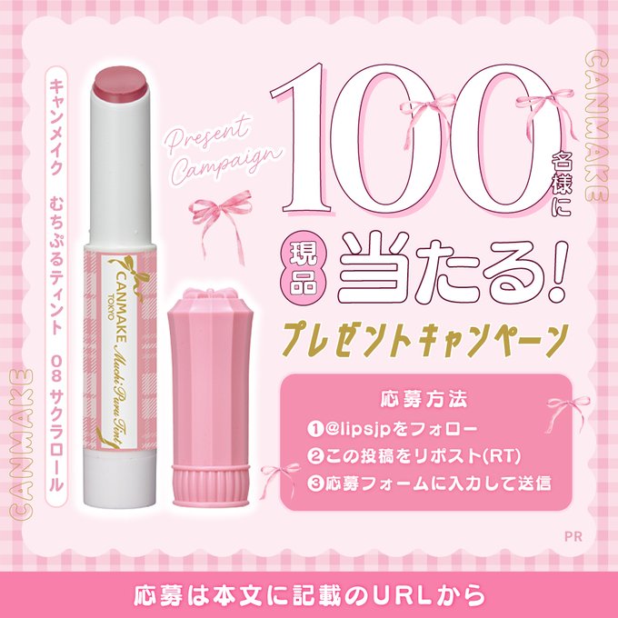 賞品:キャンメイクのむちぷるティント新色「08 サクラロール」(100名様)