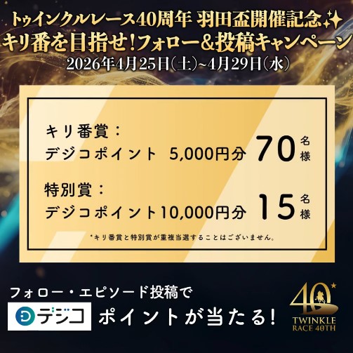 東京シティ競馬‐トゥインクルレース40周年&羽田盃開催記念 キリ番を目指せ!フォロー&投稿キャンペーン