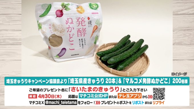 賞品:埼玉県産きゅうり20本とマルコメ発酵ぬかどこ(200名様)