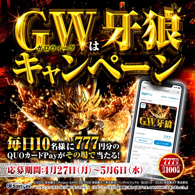 サンセイアールアンドディ‐GWは牙狼キャンペーン