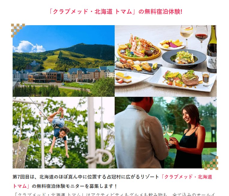 クラブメッド・北海道 トマムに無料で宿泊して、体験レポートをしてくれる方を募集!