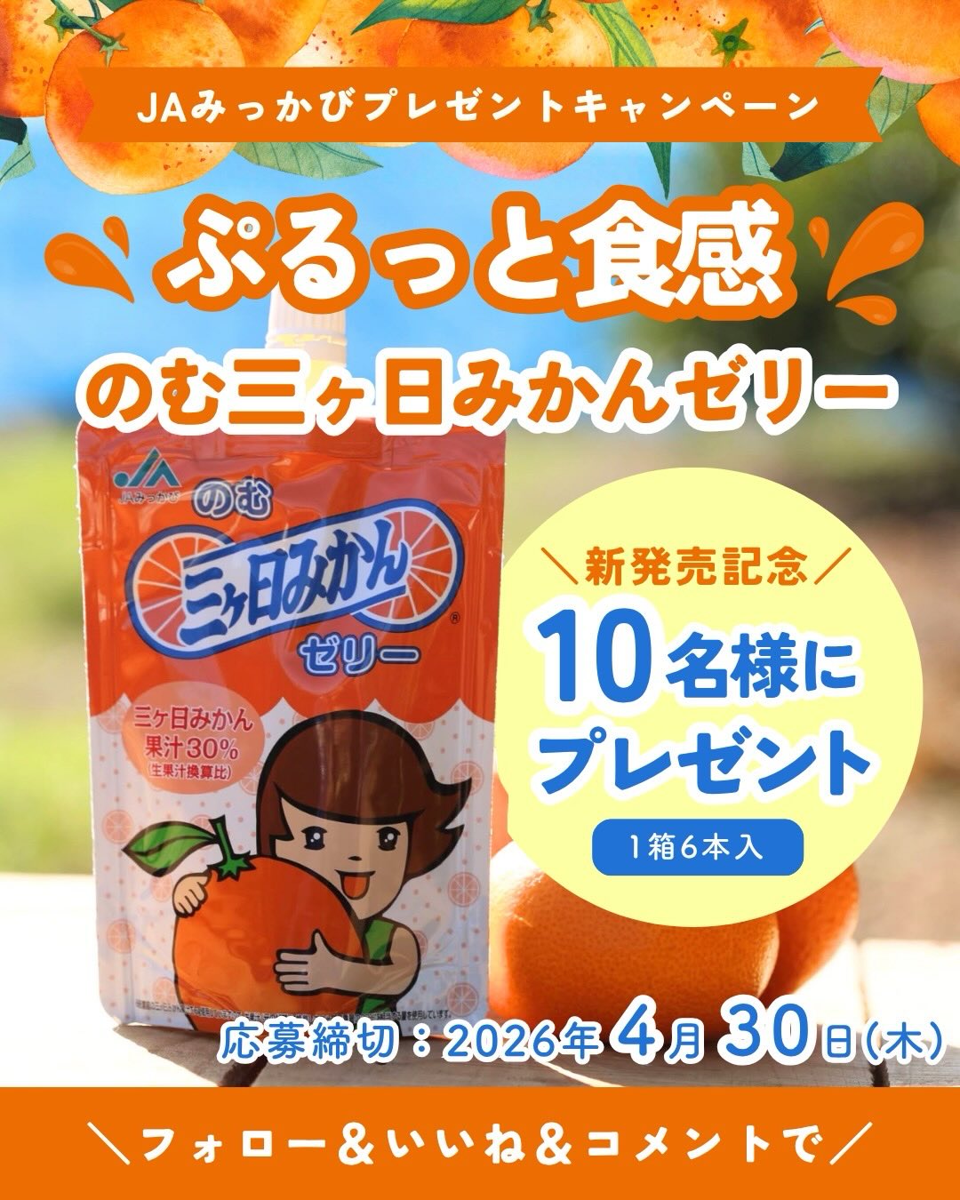 【Instagram懸賞】のむ三ヶ日みかんゼリー(6本入り)を10名様にプレゼント