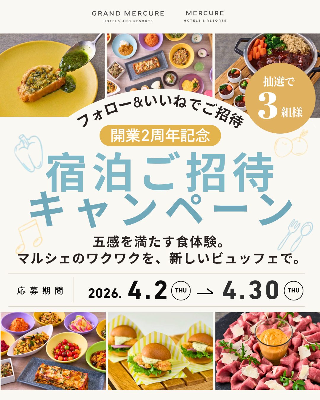 賞品:グランドメルキュール&メルキュール リゾートホテル宿泊券(3組6名様)