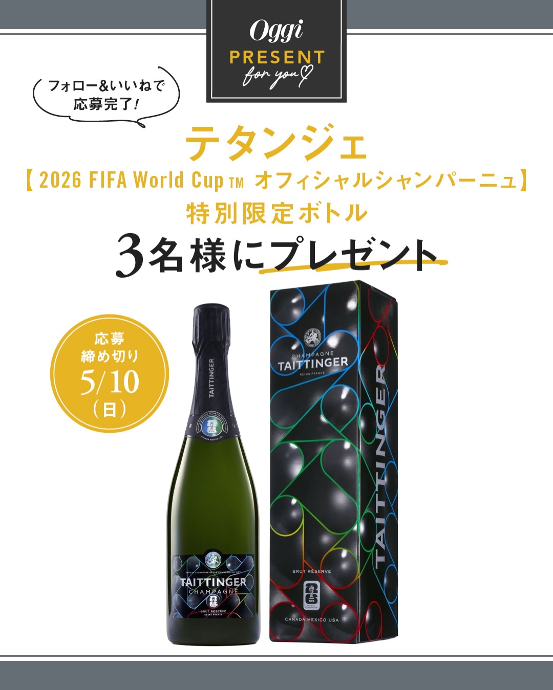 賞品:テタンジェ ブリュット・レゼルヴ FIFAボトル2026(3名様)