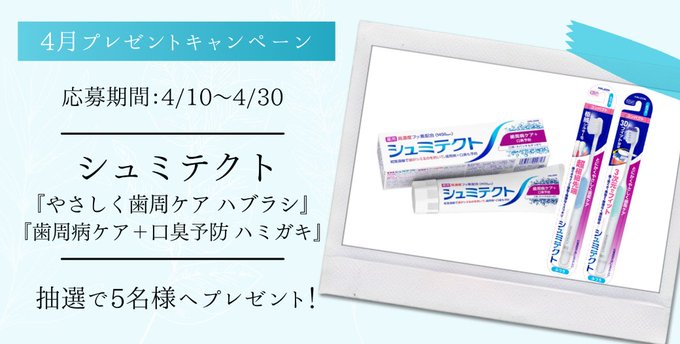 賞品:シュミテクト『 やさしく歯周ケア ハブラシ』・『歯周病ケア+口臭予防 ハミガキ』(5名様)