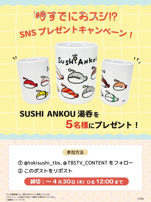 @tokisushi_tbs @TBSTV_CONTENT をフォロー&キャンペーン対象ポストをリポストしてご応募ください。