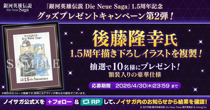 賞品:後藤隆幸さん描き下ろしの「ノイサガ1.5周年お祝い複製イラスト」(10名様)