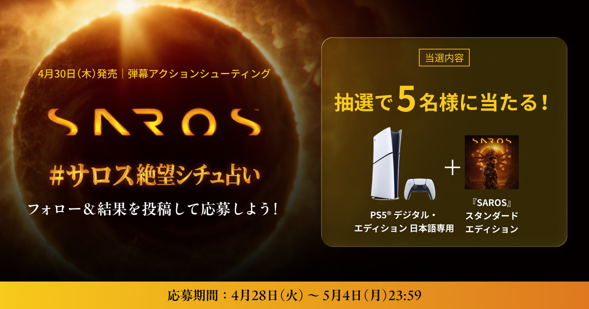 賞品:PS5® デジタル・エディション 日本語専用+『SAROS』スタンダードエディション(5名様)