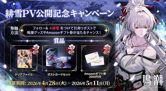 賞品:鳴潮グッズ、Amazonギフト券2,000円分(22名様)