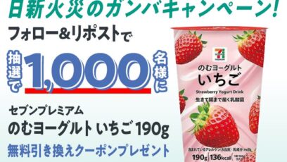 日新火災‐クライマー全力応援 日新火災のガンバキャンペーン 賞品:セブン-イレブン セブンプレミアム のむヨーグルト いちご 190g 引換券(1,000名様) 締切:20...