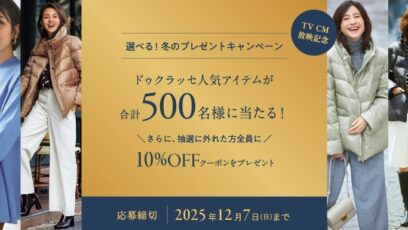 DoCLASSE‐TVCM放映記念 選べる冬のプレゼントキャンペーン 賞品: A賞:つやAirダウン・スタンドカラーコート(50名様) B賞:つやAirダウン・スタンドカラ...