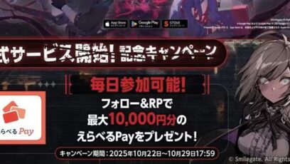 SNS応募の懸賞【毎日・X懸賞】えらべるPay最大10,000円分がその場で当たる! 締切:2025-10-29 カオスゼロナイトメア‐正式サービス開始記念キャンペーン 賞品:最大10,000円分のえらべるPay 締切:2025年10月29日(水)17時59分 カオスゼロナイトメ...SNS応募の懸賞ギフト券・商品券が当たる懸賞毎日応募できる懸賞