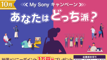 ネット応募の懸賞ソニーポイント1万円分を10名様にプレゼント 締切:2025-11-04 ソニー‐あなたはどっち派?My Sonyキャンペーン 賞品:ソニーポイント1万円分(10名様) 締切:2025年11月4日(火)13:00 アンケートに回答&キャンペ...ネット応募の懸賞ギフト券・商品券が当たる懸賞