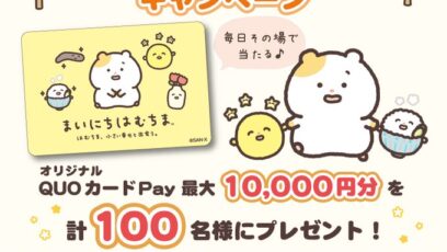 SNS応募の懸賞【毎日・X懸賞】まいにちはむちまのオリジナルQUOカードPay最大10,000円分が100名様にその場で当たる! 締切:2025-10-21 まいにちはむちま「グッズ発売うれしいなあ」キャンペーン 賞品:まいにちはむちまのオリジナルQUOカードPay最大10000円分(100名様) 締切:2025年10月21日(...SNS応募の懸賞大量当選(100名~)の懸賞ギフト券・商品券が当たる懸賞毎日応募できる懸賞