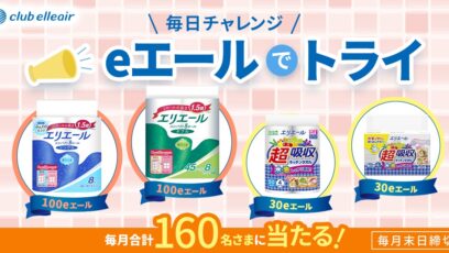 ネット応募の懸賞エリエール商品を合計160名様にプレゼント 締切:2025-10-31 エリエール‐eエールでトライ 賞品: 100eエールコース:各賞品 毎月30名さま ①エリエール トイレットティシュー コンパクト8ロール シングル 1点 ②エリエール ...ネット応募の懸賞大量当選(100名~)の懸賞