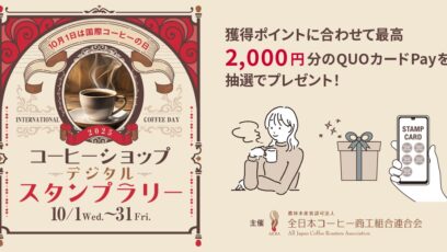 SNS応募の懸賞【LINE懸賞】QUOカードPay最大2,000円分を合計101名様にプレゼント 締切:2025-10-31 全日本コーヒー商工組合連合会‐コーヒーショップデジタルスタンプラリー 賞品: QUOカードPay500円分 70名様 QUOカードPay2,000円分 31名様 締切:...SNS応募の懸賞大量当選(100名~)の懸賞ギフト券・商品券が当たる懸賞