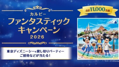 ネット応募の懸賞東京ディズニーシー®貸し切りパーティーご招待、東京ディズニーリゾート®パークチケットを合計5,500組様にプレゼント 締切:2026-06-01 カルビー株式会社‐ファンタスティックキャンペーン2026 賞品: A賞:東京ディズニーシー®貸し切りパーティーご招待(ペア)(4,000組8,000名様) B賞:東京ディズ...ネット応募の懸賞大量当選(1000名~)の懸賞