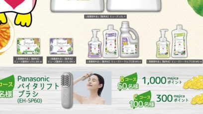 ネット応募の懸賞【アプリ】パナソニック バイタリフト ブラシ、majicaポイント最大1,000ポイントを155名様にプレゼント 締切:2025-12-09 電子マネー majica‐ボタニカル by ミューズ ボディウォッシュ ニオイケアとうるおいをたった1本で出来ちゃうってマジか!?キャンペーン 賞品: Panasonic バ...ネット応募の懸賞大量当選(100名~)の懸賞
