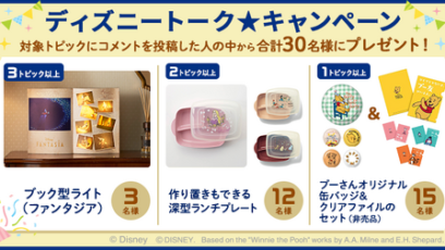 ネット応募の懸賞ディズニーグッズを合計30名様にプレゼント 締切:2025-12-25 ディズニーグッズ・コミュニティ‐ディズニートーク★キャンペーン 賞品:ディズニーグッズ(合計30名様) 締切:2025年12月25日(木)13:00 期間中、「ディズ...ネット応募の懸賞