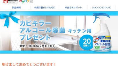 ジョンソン 今月のプレゼント 賞品:カビキラー アルコール除菌 キッチン用 本体(20名様) 締切:2026年2月1日(日) アンケートに答えてご応募ください。 ...