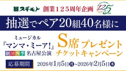 杉本食肉産業株式会社‐劇団四季ミュージカル『マンマ・ミーア!』名古屋公演S席ペアチケットプレゼントキャンペーン 賞品:劇団四季ミュージカル『マンマ・ミーア!』S席ペアチケット(...