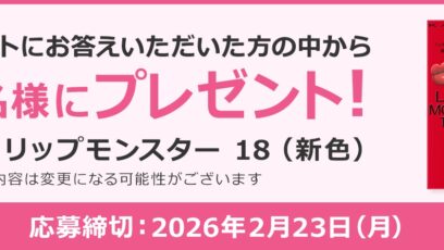 花王 My Kao‐プレゼントキャンペーン 賞品:ケイト リップモンスター 18(10名様) 締切:2026年2月23日(月) アンケートに答えてご応募ください。 ...