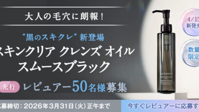 アテニア ファンコミュニティ‐レビュアー50名様募集! 賞品:スキンクリア クレンズ オイル スムースブラック(50名様) 締切:2026年3月31日(火)12:00 ...