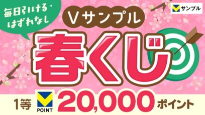 Vサンプル春くじ 賞品: 1等:Vポイント20,000ポイント…1本 2等:Vポイント300ポイント…1・3等以外の方全て(進呈条件あり) 3等:Vポイント1ポイント…2...