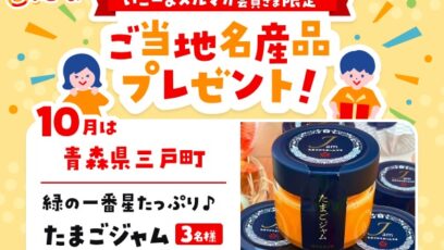 ネット応募の懸賞青森県三戸町「緑の一番星たっぷり♪たまごジャム」を3名様にプレゼント 締切:2025-10-31 いこーよ‐プレゼントキャンペーン 賞品:青森県三戸町「緑の一番星たっぷり♪たまごジャム」(3名様) 締切:2025年10月31日(金) 青森県三戸町「緑の一番星たっぷ...ネット応募の懸賞