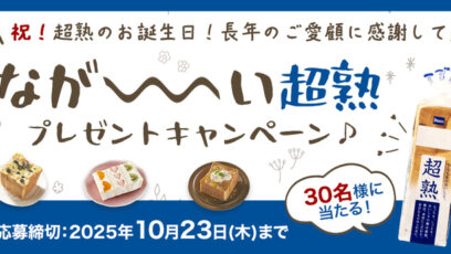ネット応募の懸賞超熟ウインドスライスを30名様にプレゼント 締切:2025-10-23 Pasco‐祝!超熟のお誕生日!長年のご愛顧に感謝して、なが~~い超熟プレゼントキャンペーン 賞品:超熟ウインドスライス(30名様) 締切:2025年10月23日(木) ...ネット応募の懸賞