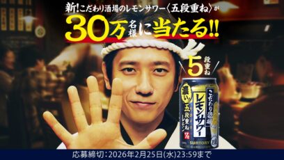 サントリー‐こだわり酒場のレモンサワー<五段重ね>350ml缶が30万名様に当たるキャンペーン 賞品:こだわり酒場のレモンサワー<五段重ね>350ml缶 1本 無料引き換えクー...