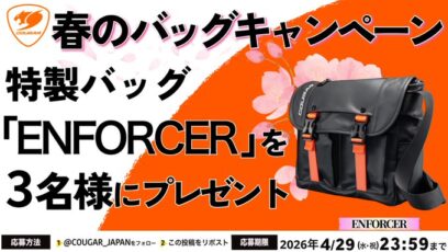 COUGAR Japan‐春の特製バッグ企画 賞品:COUGAR特製メッセンジャーバッグ「ENFORCER」(3名様) 締切:2026年4月29日(水) 公式X(Tw...