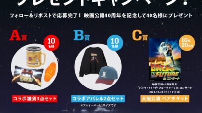 SNS応募の懸賞【X懸賞】コラボ雑貨3点セット、コラボアパレル2点セット、バック・トゥ・ザ・フューチャーinコンサート大阪公演ペアチケットを30名様にプレゼント