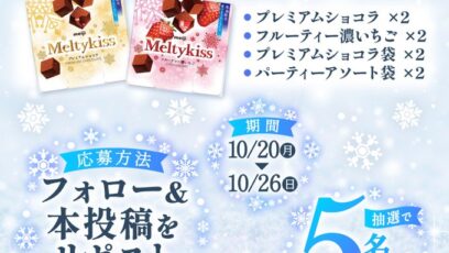 SNS応募の懸賞【X懸賞】メルティーキッスの詰め合わせを5名様にプレゼント 締切:2025-10-26 イトーヨーカドー‐フォロー&リポストキャンペーン 賞品:メルティーキッスの詰め合わせ(5名様) 締切:2025年10月26日(日) 公式X(Twitter)アカウント...SNS応募の懸賞