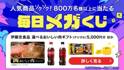 ネット応募の懸賞【毎日・アプリ】選べるおいしい肉ギフト、コカ・コーラ無料クーポン、ブラックサンダー無料クーポン、スマニューポイントがその場で当たる!