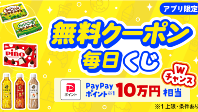 日替わり無料クーポンが当たるキャンペーン 賞品: 明治 きのこの山 または たけのこの里 いずれか1つ 1,000本 森永 ピノ 500本 キリン 午後の紅茶 500ml...