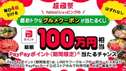 ネット応募の懸賞【毎日応募】PayPayポイント最大30万円相当、無料引換券、ヤフーのサービスで使えるクーポンなどがその場で当たる!