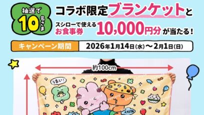 SNS応募の懸賞【X懸賞】コラボ限定ブランケット&スシローお食事券10,000円分を10名様にプレゼント