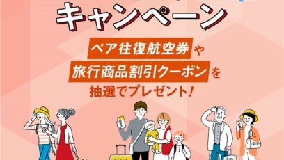 ネット応募の懸賞FDA便全便で使えるペア往復航空券、旅行商品割引クーポン、FDAオンラインショップグッズ詰め合わせ、10%割引クーポンを合計113名様にプレゼント