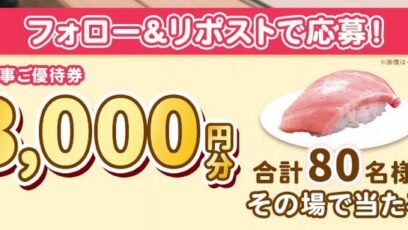 SNS応募の懸賞【X懸賞】スシローで使えるお食事券30,000円分を10名様にプレゼント