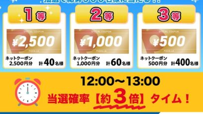 SNS応募の懸賞【毎日・X懸賞】ピザーラネットクーポンが総勢500名様にその場で当たる!
