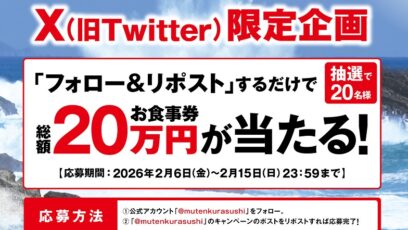 SNS応募の懸賞【X懸賞】スシローで使えるお食事券10,000円分を20名様にプレゼント