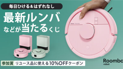 最新ルンバなどが当たるくじ 賞品: 1等:Roomba® Mini 掃除機&床拭きロボット 4本 参加賞:リユース品に使える10%OFFクーポン 上記当選者以外全員 締...