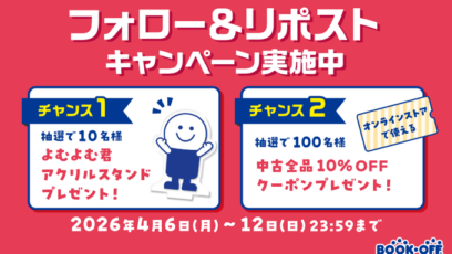 SNS応募の懸賞【X懸賞】よむよむ君アクリルスタンド、ブックオフ公式オンラインストアで利用できる中古全品10%OFFクーポンを合計110名様にプレゼント