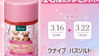 SNS応募の懸賞【X懸賞】クナイプのバスソルト”サクラの香り”を1名様にプレゼント 締切:2026-03-22 Mimi Beauty‐フォロー&リポストキャンペーン 賞品:クナイプのバスソルト"サクラの香り"(1名様) 締切:2026年3月22日(日) 公式X(Twitter...SNS応募の懸賞