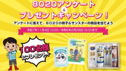 8020推進財団‐8020アンケート・プレゼントキャンペーン 賞品:8020小冊子&サンスターの商品(100名様) 締切:2026年2月28日(土)18:00 アンケ...