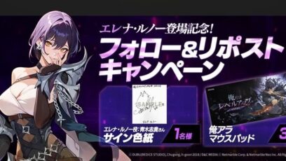 俺だけレベルアップな件:ARISE‐#エレナルノー 登場記念 賞品: 青木志貴 さん のサイン色紙(1名様) 俺アラ マウスパッド (3名様) 締切:2026年4月15...