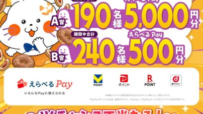 SNS応募の懸賞【毎日・X懸賞】えらべるPay最大5,000円分が合計430名様にその場で当たる!