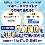 SNS応募の懸賞【毎日・X懸賞】最大10,000円分が合計1,200名様にその場で当たる!