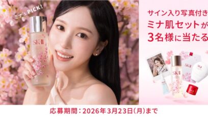 SNS応募の懸賞【X懸賞】ミナさん直筆サイン入り写真と「ミナ肌コラボセット」が3名様にその場で当たる! 締切:2026-03-23 SK-II‐プレゼントキャンペーン 賞品:ミナさん直筆サイン入り写真と「ミナ肌コラボセット」(3名様) 締切:2026年3月23日(月) SK-IIで理想の素肌を叶え...SNS応募の懸賞